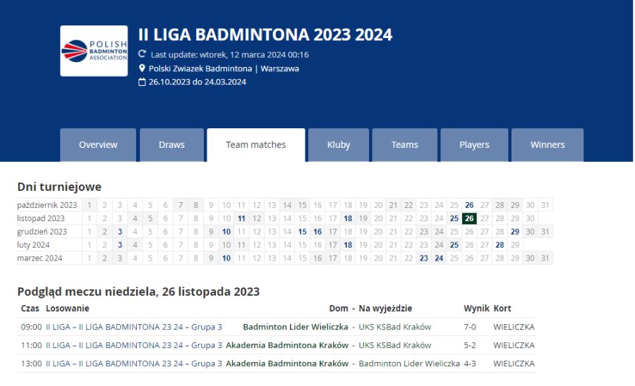 Komplet wyników https://pzbad.tournamentsoftware.com/sport/matches.aspx?id=2E5F2941-05FC-453D-A291-389830048739&d=20231126